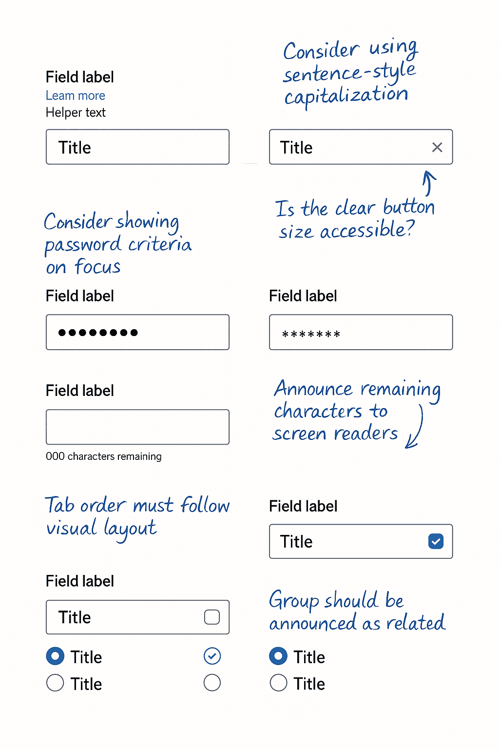 Collaborating with dev and a11y stakeholders to understand constraints and best practices.